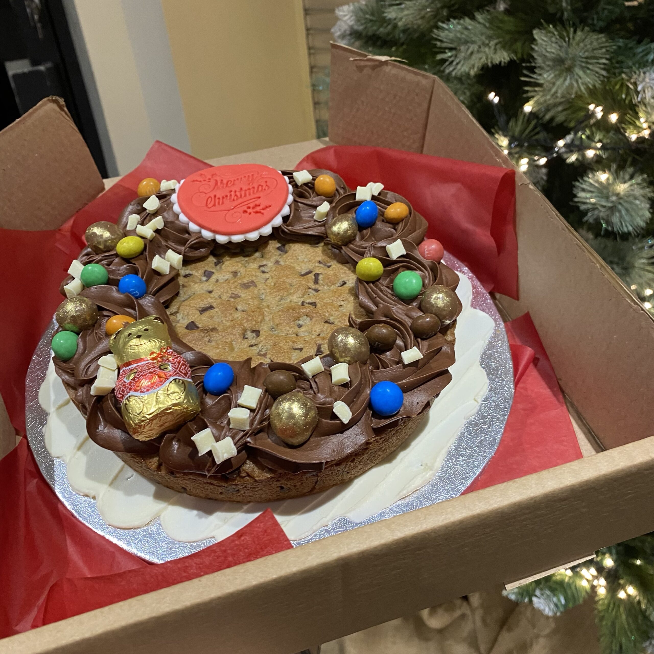Cookie Wreath – Sugar, Butter, Eggs, Flour, White Chocolate Chunks, Baking Powder, Bicarb of Soda, Biscoff Spread, Crispy M&Ms, Chocolate Orange, Maltesers, Mini Lindt Bear, Icing Disc, Milk Chocolate, Dark Chocolate, Double Cream, Consensed Milk, Espresso Powder