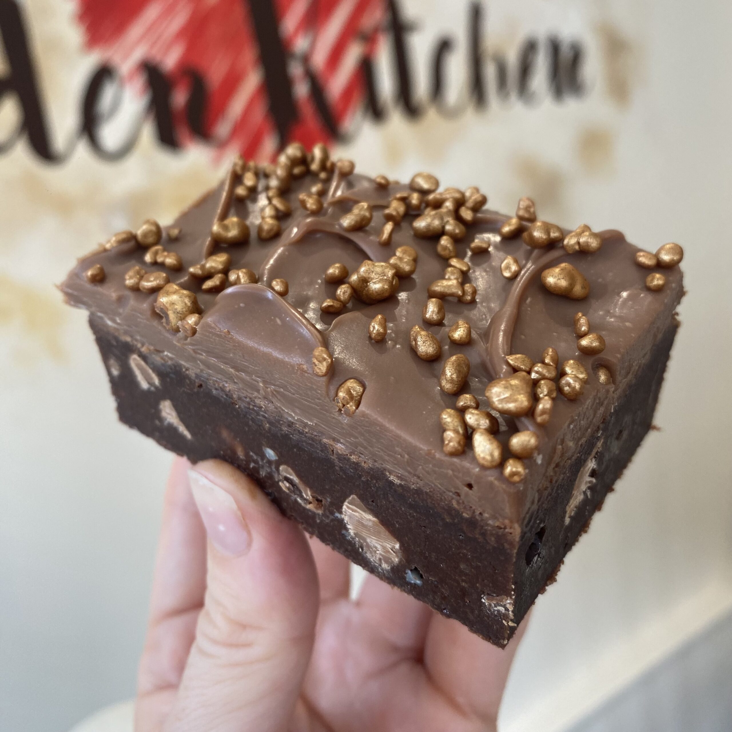 Ingredients – Dark Chocolate, Butter, Eggs. Sugar, Flour, Cocoa Powder, Salt, Galaxy Milk Chocolate, Double Cream, Gold Crunch Sprinkles.